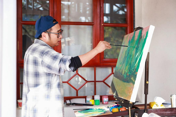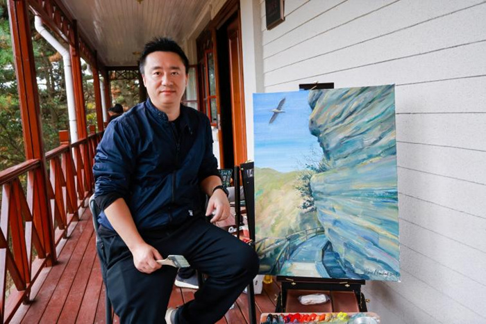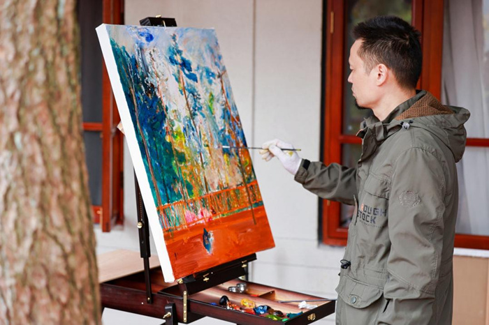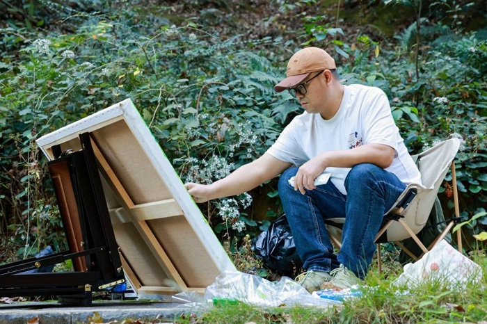 江蘇省青年美協副主席、吳冠中藝術館副館長、八零油畫學社副社長袁景在廬山寫生