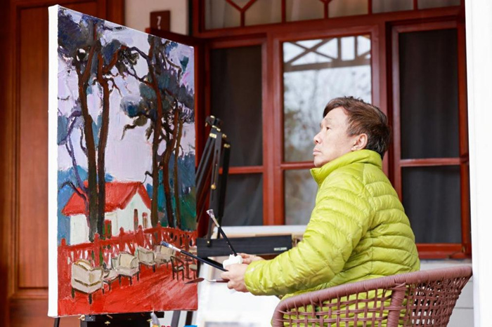 重慶市美協副主席、重慶市油畫學會副會長侯寶川描繪了廬山上的植物與建筑,他認為“作為中國最早大規模修建外國別墅的地區,廬山的萬國別墅群在洋氣之中,充滿了中國特色?!?/p>