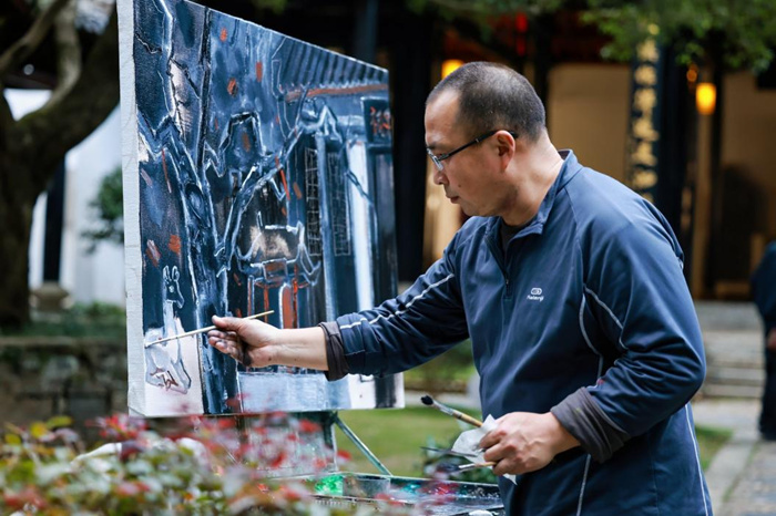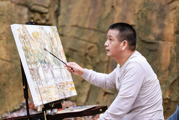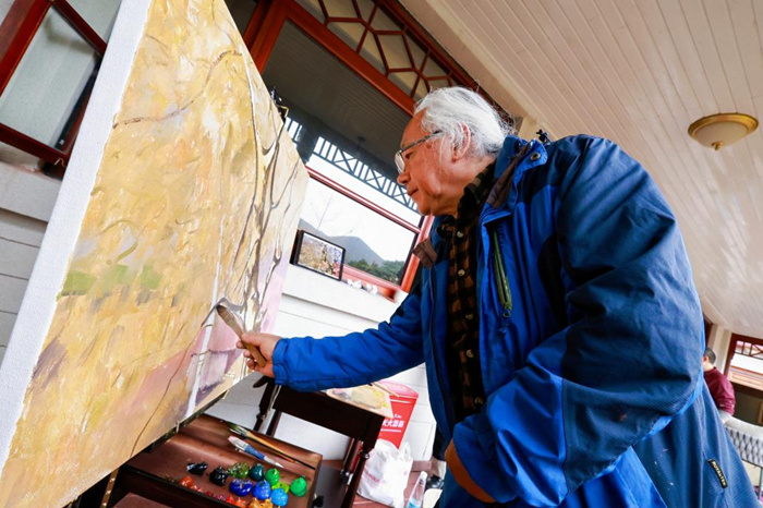 重慶市油畫學會會長翁凱旋在白鹿洞書院寫生