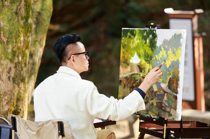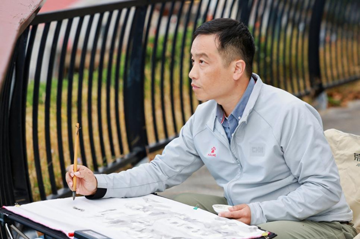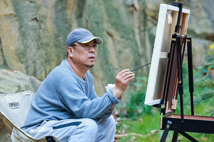 北京印刷學院設計藝術學院副教授、70油畫公社社員梁智龍在白鹿洞書院寫生