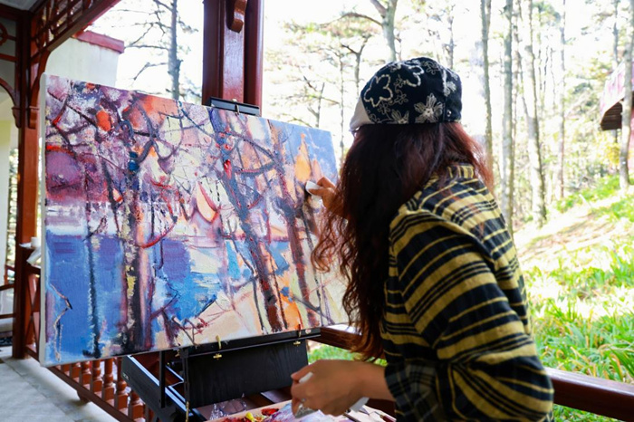 江西師范大學美術學院副教授、江西省美協理事、70油畫公社社員楊芷在廬山寫生