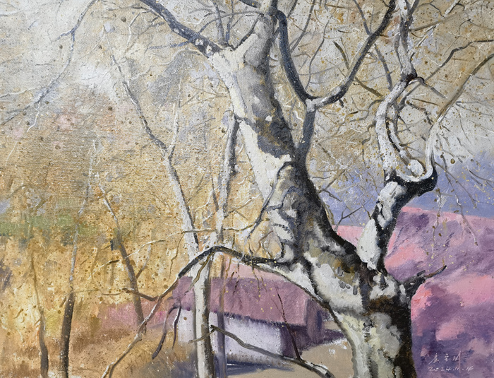 中國美協油畫藝委會委員、中國油畫學會理事、《中國油畫》執行主編王琨筆下的蒼松與紅頂建筑