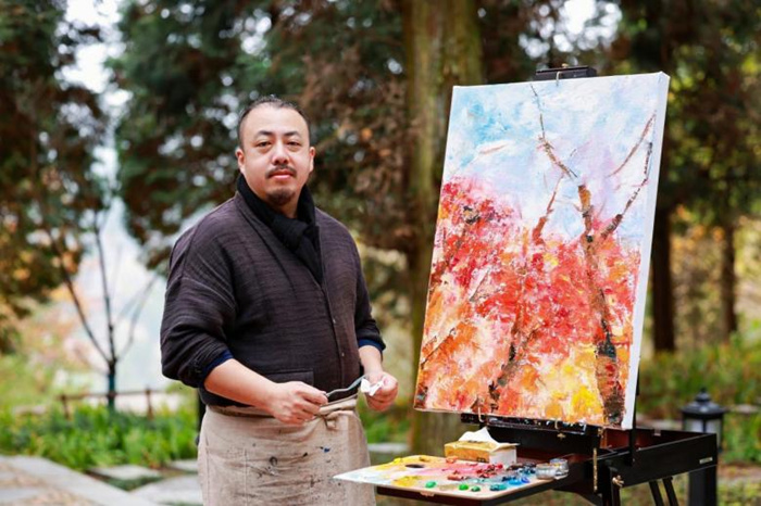 重慶市美協副主席、重慶市油畫學會副會長侯寶川描繪“廬山法桐”