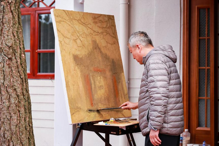 吉林藝術學院教授、吉林省油畫學會理事、70油畫公社社員孫昌武在白鹿洞書院寫生