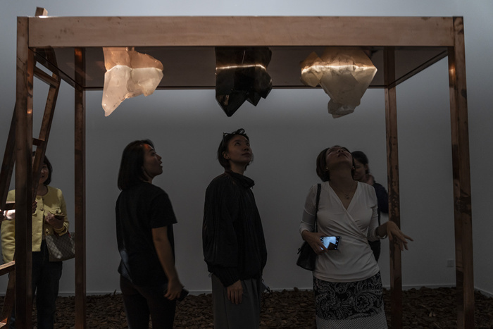 Z:主要還是技術上的難點,因為工程師來自全世界各地,比如西班牙、美國、英國,都是瑪麗娜常年合作的團隊成員了。然后就是那些水晶、礦石運輸涉及的進出口問題。最后就是如何去理解藝術家的理念對布展工人也是一個挑戰(并非掛畫、擺裝置那么簡單)。