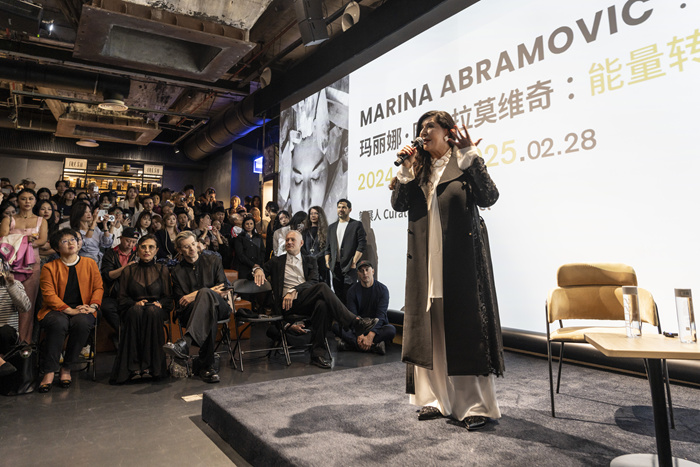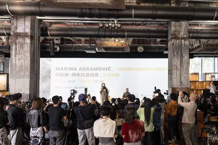 10月11日,上海藝倉美術館舉辦了瑪麗娜·阿布拉莫維奇在中國的首次美術館個展“能量轉換”。在開幕當天,行動不便的藝術家依然克服長途飛行的困難,親赴美術館現場與中國觀眾進行面對面的交流,可見她的誠意及對本次展覽的重視。