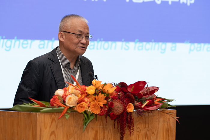 中央美術學院院長林茂在大會開幕致辭中首先對蒞臨研討會的來自于各院校、學界與業界的美術教育領域專家、學者表示熱烈歡迎和衷心感謝。他談及,中央美術學院作為推動美術教育事業發展的前沿陣地,始終以國家教育強國戰略為指導,通過學科交叉與跨界合作,推動美術教育在全球化背景下的創新與發展,致力于培養具有國際視野、創新能力和社會責任感的藝術人才,努力為中華民族偉大復興貢獻智慧和力量。