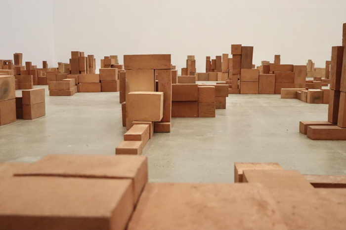 安東尼·葛姆雷:是的,能夠從三樓去俯瞰是我計劃之中的,?且確實在某種意義上?倫敦只有?層的展廳會更有價值。諸位看到這個作品的時候會覺得很熟悉,因為我所使?的材料就是磚,這是我們這種建筑?地??最常?的?種建筑材料。但是當我們想要去解讀它的時候,?沒有那么容易。