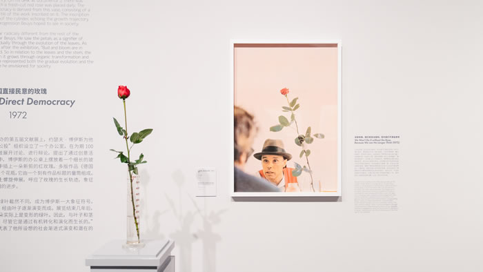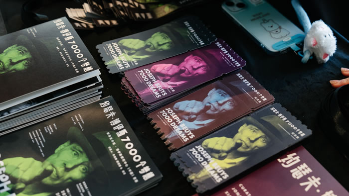《約瑟夫·博伊斯:7000個夢想》作為博伊斯研究中心(中國)成立首展,以博伊斯著名的生態藝術項目《7000棵橡樹》為切入點,分七個章節回顧博伊斯的藝術成果,展出作品包括11件首次在華展出的博伊斯行為藝術影像、《7000棵橡樹》(德國攝影師迪特爾·施沃德勒記錄該項目的110余張照片)、版畫(50余幅原版石版畫和蝕刻版畫)、多版作品(超過550件多版藝術品和明信片)、海報與近400件關于博伊斯的書籍與出版物等。