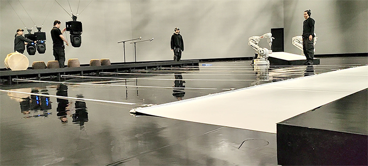 每個節目都需要解決不同的技術難題?!跋?米×8米的地毯和地膠,其重量已超出人工操作范圍?!壁w曉宇解釋說,“為此,我們在舞臺下層專門研發了自動化收放系統,采用精密卷揚機進行控制。該系統不僅能在演出時實現地膠、地毯的自動伸展,演出結束后還可以精確收納,同時確保收納后的舞臺表面完全平整,滿足其他演出需求?!?/p>
