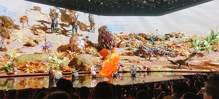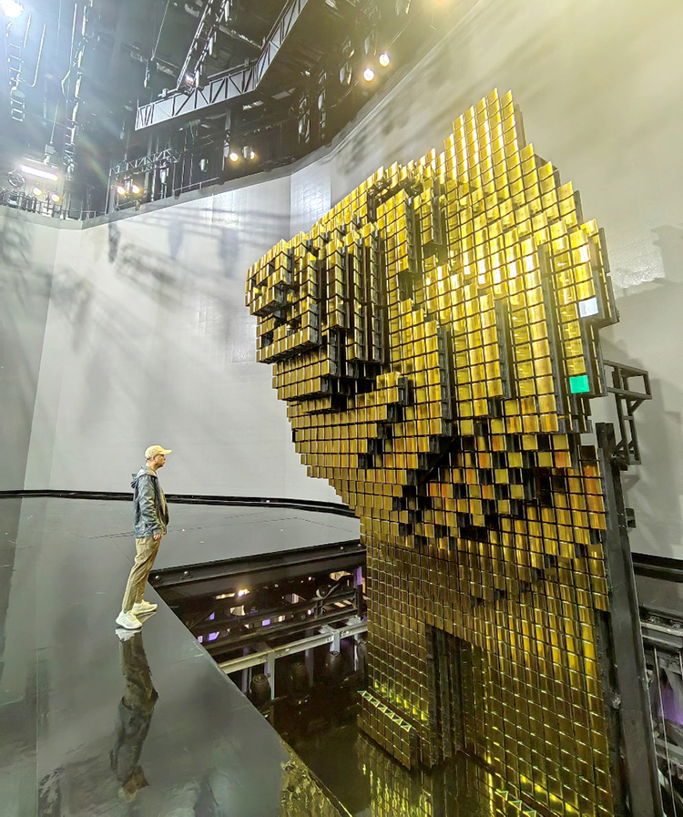 “舞美設計不能只停留在裝飾層面,它必須有自己的‘語言’?!痹诳偨Y《澳門2049》隱藏式舞臺創作經歷時,趙曉宇這樣強調?!熬拖袂f子說的‘天地有大美而不言’,張藝謀導演的這臺新作給了我一個啟示:不必執著于堆砌華麗的實體布景,有時‘隱’的智慧反而能創造出更震撼的藝術效果。當舞臺能夠在‘顯’與‘隱’之間自如轉換,我們就找到了一種全新的適合中國文化的舞臺美術語言——深刻理解每種非遺藝術特質的基礎上,通過現代科技手段強化其藝術表現力。