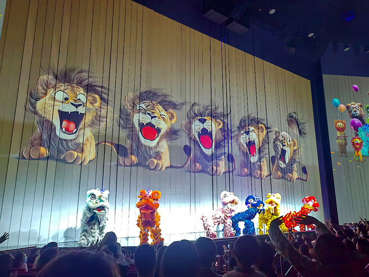 在所有技術挑戰中,“美獅·光芒”單元中的巨型機械獅子的設計堪稱最為復雜?!斑@個機械獅子的初始設計高度接近8米,重量十分可觀?!壁w曉宇說,“但受限于舞臺承重能力和下沉倉的深度極限,我們不得不進行多輪技術改良,通過優化鱗片數量來減輕重量,同時采用了兩節式折疊結構。為了確保折疊結構的可靠性,我們在制作方——天津舞美研究所進行了為期一個多月的持續測試,才最終攻克了這一技術難關?!?/p>