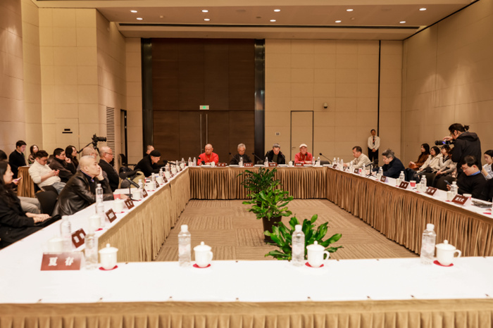 在展覽開幕之際,主題學術研討會在中華藝術宮5米多功能廳同期舉行。本次研討會在兩個分會場同時進行,邀請多位專家、學者及藝術家,圍繞“人類靈魂的審問者:忻東旺藝術與人民性精神譜系的建構”“從寫實到寫意:忻東旺藝術與中國氣派油畫體系的建立”“忻東旺繪畫教育理念的當代性價值”三個議題展開討論和論述,共同探討忻東旺的藝術語言與繪畫風格、教育實踐與創新,以及當代繪畫教育所面臨的挑戰與機遇等問題。