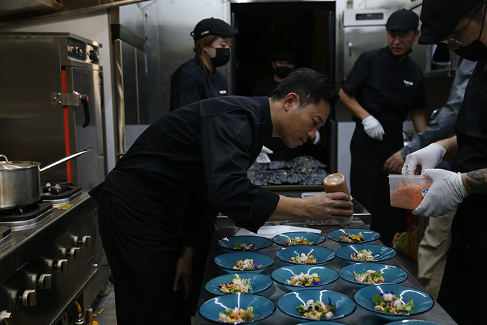 比如我們這邊的員工餐,就通過招募本地的年輕人來解決。我們教他們如何清洗專業廚具,怎么做員工餐。他們一邊學習,一邊工作,融合得很好,進步也特別快。還有負責保潔的黃艷芬大姐,她有五個孩子,現在她的孩子也跟著我們團隊一起在村里活動。她自己也很有主人翁意識,成了我們和村民之間的橋梁。