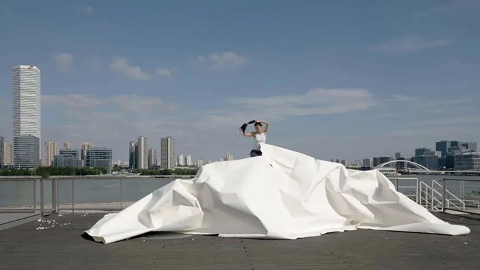 童文敏現場行為演出“山水—河流”,油罐藝術中心,2024年
