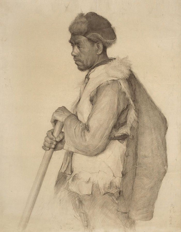 靳尚誼《拄棍的老人王大爺》 76.1×61.3cm 紙上鉛筆 1955年中央美術學院美術館藏