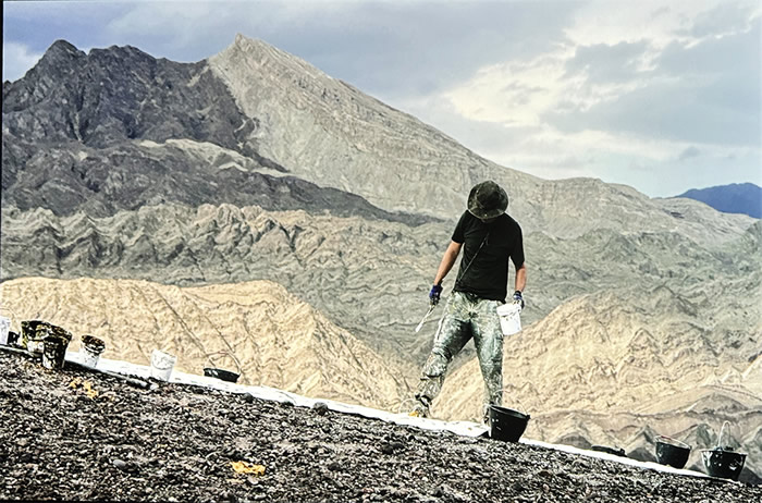 《迷途》主要記錄了劉商英在新疆阿爾金山的創作過程。不同于他在內蒙古和羅布泊創作中對荒野強烈力量的直接回應,在阿爾金山的創作中,藝術家更注重融入荒野的節奏與韻律,展現出與自然深度和諧的表達。