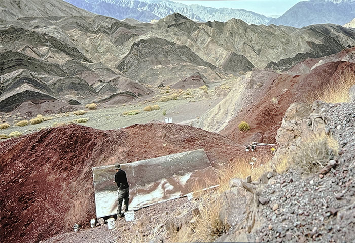 在中國藝術界,劉商英是少有意識到荒野價值的藝術家,他最初是在西藏風景寫生中逐漸發現了荒野的意義,他通過身體與自然的直接接觸,重新獲得對世界的敏銳感知和直接的表達方式?;囊皩τ谒呀洸辉偈且环N繪畫對象,更像是一種生活和精神的修煉方式,他的身體、五感和心靈感受到荒野的博大,風沙的呼嘯和流水的潺潺,感受石頭和土壤的質感,他以意志與狂沙、暴雪、酷熱、嚴寒搏斗與和解,他在荒野中探尋每一處隱匿角落中存續的千萬年的信息。在經年累月中,劉商英的“荒野行動”早已超越了風景圖像者的定位,而是將藝術與生存踐行在一起,將人的存在與荒野融為一體。劉商英的創作方式既可以理解為某種嶄新的藝術實踐方式,也可以想象為類似史前人類生存藝術的映射,他是用自身的行動重新鏈接起人與荒野的聯系,他讓我們意識到荒野對現代文明的價值,繼而從新思考藝術的價值觀。