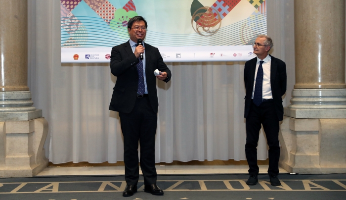 在開幕致辭環節,馬贊蒂尼館長首先提到,意大利和中國同為文明古國,擁有著舉世矚目的豐富文化遺產。近年來可明顯感受到雙方文化合作意愿正不斷加強,越來越多的中國美術家走進意大利進行交流。本次展覽為意大利觀眾帶來一個深入了解中國當代美術特色的窗口,同時也與館內正在舉辦的未來主義主題作品展相互映照,很好地體現了文明對話和藝術互鑒。