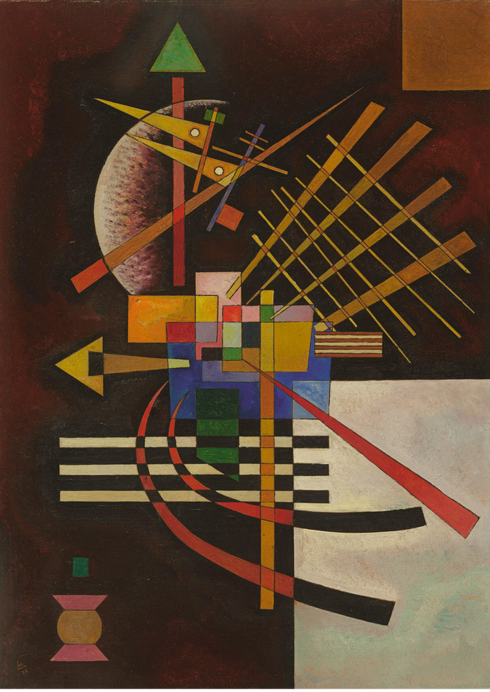 康定斯基(Васи?лий Васи?льевич Канди?нский/ Wassily Kandinsky,1866-1944年)是出生于俄國的畫家和藝術理論家,他具有聯覺能力,能夠聽見色彩,因此他廣泛地將音樂的抽象形式應用在繪畫中??刀ㄋ够?0世紀幾何抽象藝術的先驅和代表人物。在20世紀初,幾何抽象風格的藝術家將藝術簡化為顏色、線條和形狀的相互作用,形成了一種超越國界、反映現代世界的抽象視覺語言。