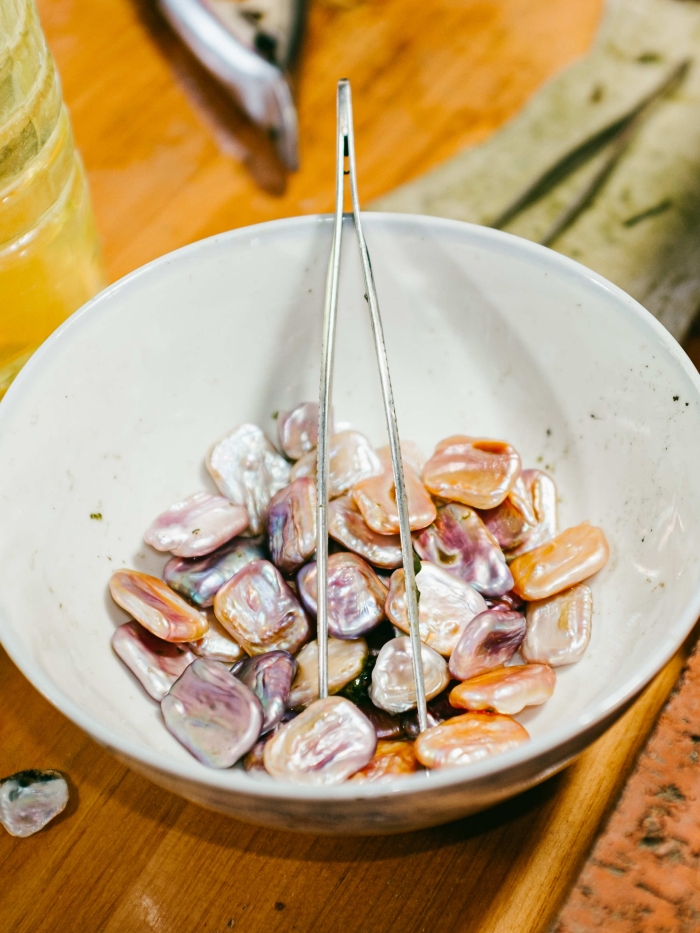 珍珠不僅是隱喻,更可被視為無言的“創傷檔案”。每顆珍珠都記錄了貝類從受傷到愈合的過程:層層珍珠質凝結的年輪、表面斑駁的紋路和傷痕,都暗藏著時間與傷痛的痕跡。馮吳超將珍珠視為“懺悔的鏡子”,既映照自我也折射群體,是矛盾與和解的見證。珍珠表面反復出現的紋理、裂痕、孔洞與皺褶仿佛在“訴說”貝類的生命故事、所歷的創傷,以及那促使集體關切的迫切呼聲。珍珠由此成為超越語言文字的見證者:它以無聲的方式“說”出了創傷記憶,在物質形態中保存歷史與情感。這樣的材料見證也蘊含文化維度:珍珠養殖過程涉及人類(尤其低薪女性勞工)的參與和自然的相互作用,因此每顆珍珠亦隱含著人類與自然關系的片段史。通過珍珠這一檔案,藝術家讓時間、身體與文化在此交匯,在物質中沉淀出多層意義。