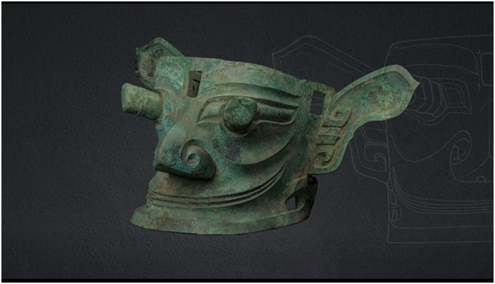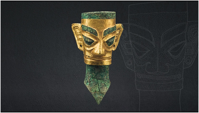 三星堆文化位于四川省廣漢市三星堆鎮,是新石器時代至商周的蜀文化遺址,其中出土上千件珍貴的文物,以青銅和金飾品為主,包含人像、人面具、神樹、太陽、動物、禽鳥等,具有王權與神權并存的特征。三星堆文化的面貌與中原商文化的面貌迥異,較難理解,但也因神秘性而受到當代人的喜愛?!赌倪钢凳馈穼τ谌嵌盐幕慕梃b便滿足了觀眾在這一方面的需求。