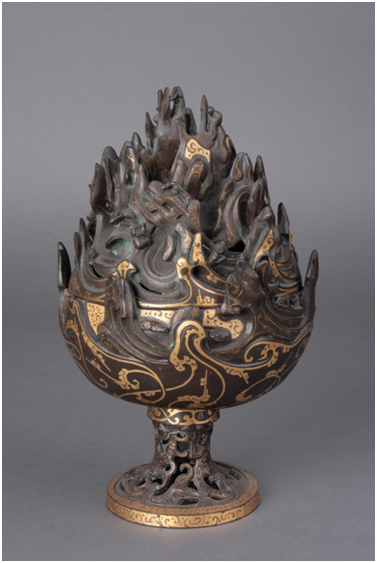 西漢錯金銅博山爐,腹徑15.5cm,通高26cm,河北省博物館藏,圖片來源:河北省博物館