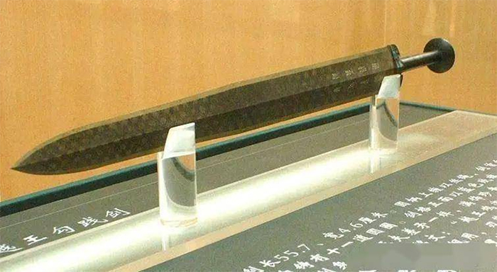 《哪吒之魔童鬧?!分谐霈F了大量青銅兵器。殷夫人則使用了一把典型的戰國圓首雙箍青銅劍,這類青銅劍以越王勾踐劍為代表。劍身有菱形紋,劍柄上纏繞了紫色絲緱,有利于抓握。
