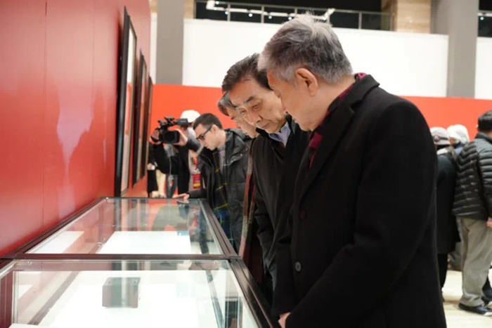 文化和旅游部黨組成員、副部長盧映川向豐子愷先生家屬頒發收藏證書。中國國家畫院院長、中國美術家協會副主席劉萬鳴,中國國家畫院原副院長張江舟,中國美術家協會副主席、中國國家畫院花鳥畫所名譽所長賈廣健分別代表中國國家畫院接受豐子愷先生家屬代表、豐子愷嫡孫、豐子愷研究會會長豐羽捐贈的豐子愷國畫作品、生前用硯以及《豐氏家族合作長卷》。