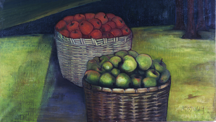賀慕群,二簍蘋果,1978,油彩布本,114×195cm 圖片來源:亞洲協會香港中心與真寶基金會