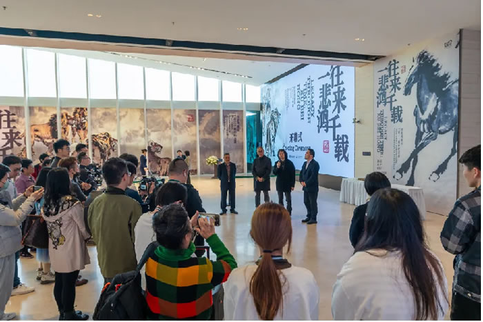 展覽的開幕不僅受到全國各地的廣泛關注,還吸引了數十家媒體前來看展和報道。在開幕當天,策展團隊和專家學者為媒體進行了專場的導覽并舉辦媒體見面會,解讀徐悲鴻的藝術人生以及展覽舉辦的價值與意義。多家媒體進行了提問采訪,并通過形式多樣的報道,進一步引發了廣大市民的關注和熱議。