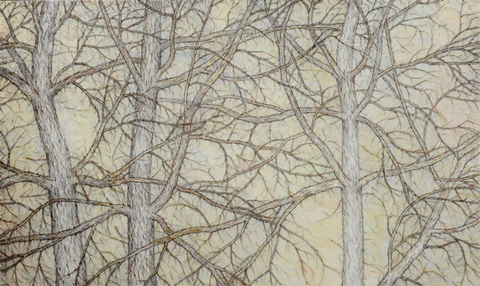 梁:我注意到,在你2009年左右的作品中,用碳筆皴擦揉的方式來處理與之后作品中的邊界處理有一貫的延續吧?這和你的中國畫研究有關嗎?