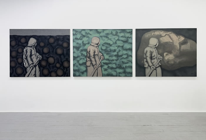 李滿金作品中所有的物象都是與生活相關的。這種敘事并非宏觀,但她往往用大尺幅的作品擴大微觀的情感鏈接并用堅實的塑造感使這種個人的、微觀的生活中的物象以普世化的方式呈現在大眾面前。比如外婆的背影、提水的男孩、叢林、石頭、鴿子與果實,他們被放大、被搬到非常重要的位置,醒目而自信地存在。他們就是這種存在,因為一位藝術家的觀察、直覺與表達,不再僅僅只是物理意義上的存在了。