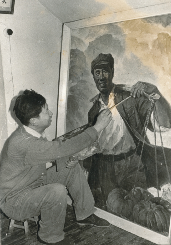 1977年,肖峰在延安飯店作畫