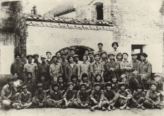 1946年,新安旅行團成員于淮陰合影。第二排左起第二人為肖峰。