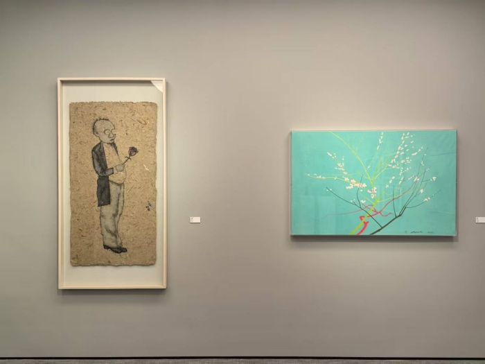 展覽現場(從左至右):藝術家劉慶和的作品《節日快樂》(左);藝術家陳琦的作品《櫻花》(右)
