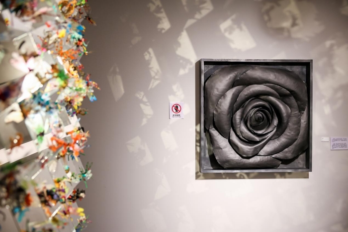 展覽現場,藝術家唐勇的作品《花——生命的欲望》