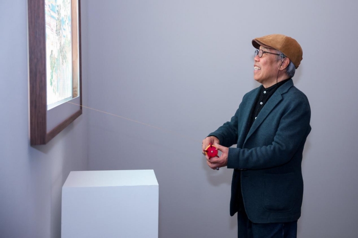 展覽現場,藝術家繆曉春的作品《從頭再來》