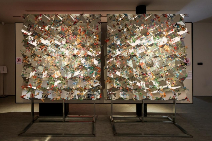 展覽現場,藝術家陳海藍的作品《紙鳶漫游》