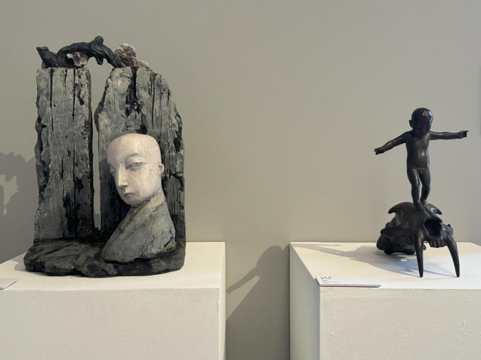 展覽現場(從左至右):藝術家盧征遠的作品《陽光與影》《孤獨》