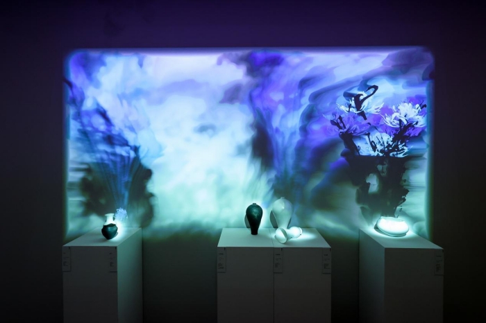 展覽現場,藝術家馬浚誠的作品《若花·序章》