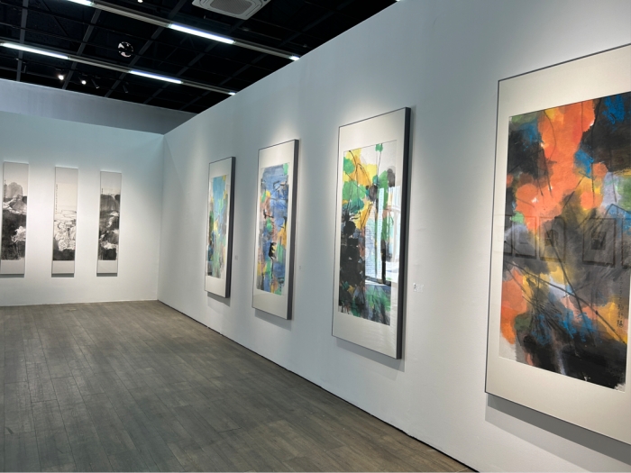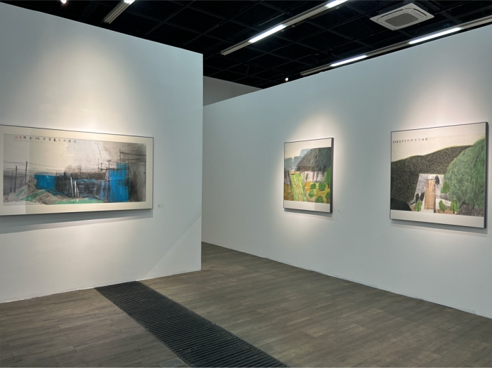 這次展出她的當代水墨風景部分,仍然延續了其“驢行”系列主題,筆墨風格則進一步突破具象思維認知,在中國畫寫意內涵中融入西方色彩繪畫語言,作品展現出筆墨色疊加沖撞交融的抽象形式意味。