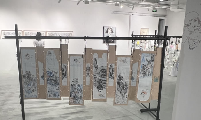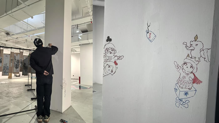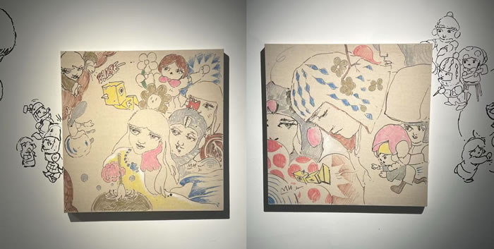 展覽空間極具互動性,《伊莉絲涂鴉夢想》(Elise Doodle Dreams)通過藝術家Michael Huang即興創作的畫作展現了小伊莉絲在墻面與畫布間的自由互動,反映了她多變的個性與無拘無束的生活態度。