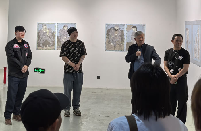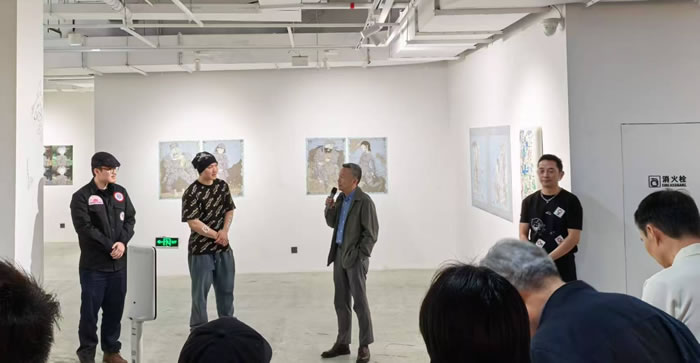 開幕式上,同濟大學知名教授吳國欣,當代詩人、作家及策展人古岡,上海鳩申文化董事長熊玫女士發表了精彩的演講,分享了他們對《小丑伊莉絲》(The Joker Elise)展覽核心主題的深刻見解。展覽現場,嘉賓圍繞展覽如何呈現藝術創作的自由性與流動性展開討論,探討了伊莉絲及其追隨者們在追尋自我與自由過程中所面臨的內心掙扎和外部挑戰。討論還圍繞藝術作品的情感表達、創作自由與無拘無束的藝術精神展開,特別提到《福羅·沙人》(Forro the Sandman) 和《無者軍團》(Army of None)的情感深度和藝術性表現。