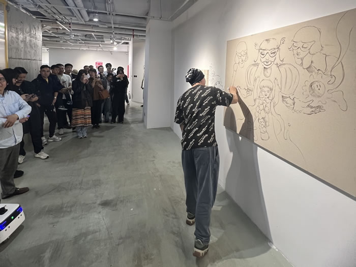 更值得一提的是,開幕現場獲得了魔方眼的支持,他們為展覽進行了為期一小時的直播,帶領觀眾全程參觀展覽空間并與藝術家和策展人進行互動。