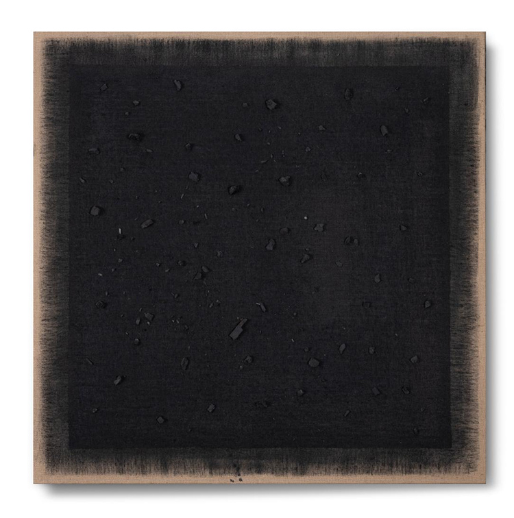 梅法釵,《燼》系列18,2024,亞麻布、炭渣、膠,100×100cm? 梅法釵工作室,布里詩畫廊