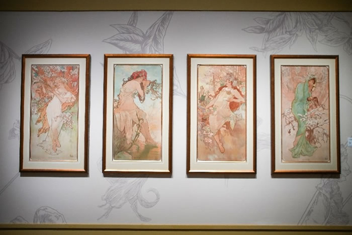 19世紀未興起的婦女解放運動浪潮,讓女性題材成為繪畫作品的熱門主題。穆夏將女性作為作品中永恒的主題,為畫中的女性人物勾勒夢幻的造型,穿上華美的服飾,點綴自然的裝飾,創造出無數個優雅迷人、氣質獨特的女性形象。本次展開呈現了《四季系列》等多組穆夏經典兩聯幅、四聯幅作品。