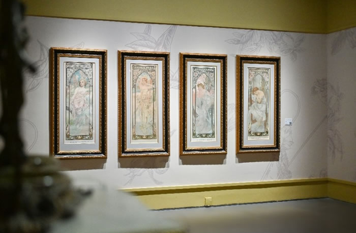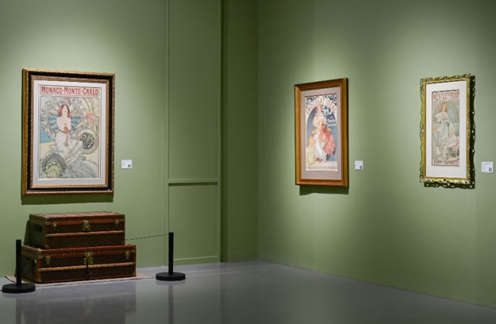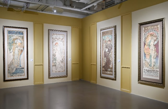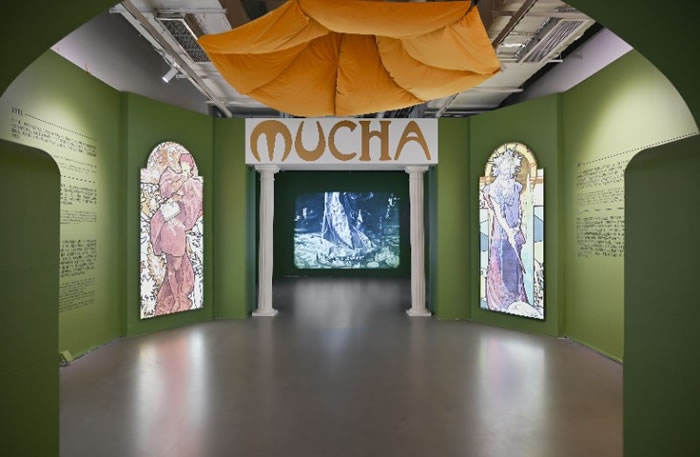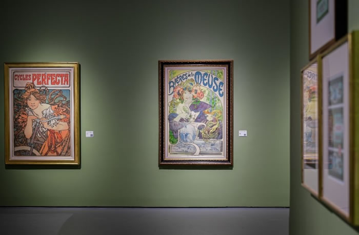 展覽呈現了穆夏為莎拉創作了被視作他戲劇海報最高成就的《茶花女》等一系列經典海報作品。這種以女性身姿為畫面主體,運用優美的曲線,簡潔的輪廓線,象征意味的符號,明快和諧的色彩,融和了傳統拜占庭、巴洛克及洛可可藝術和東方浮世繪的視覺設計被稱為“穆夏風格”。