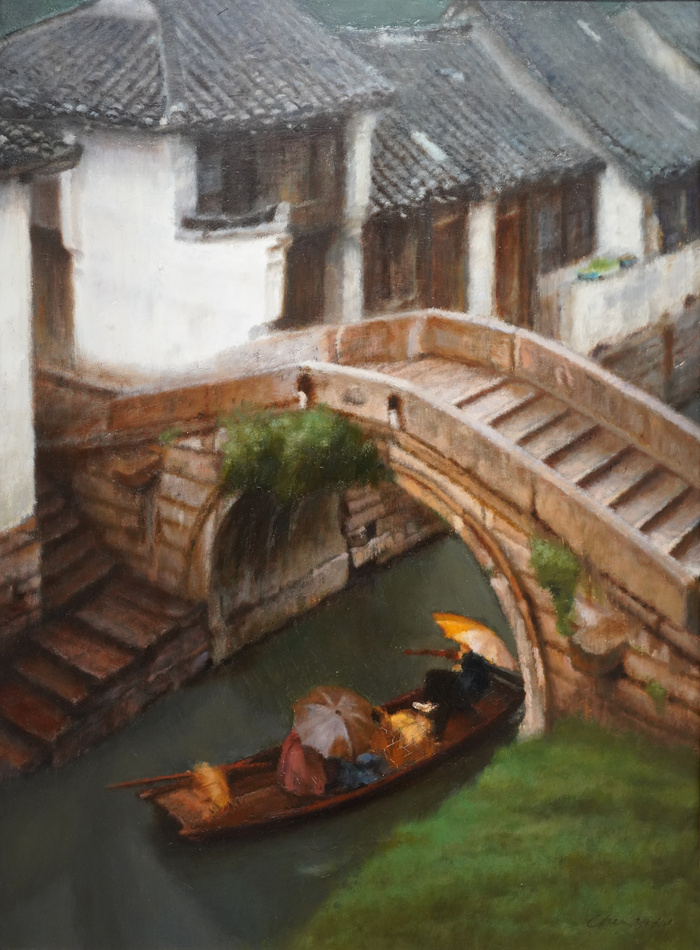 2025年是陳逸飛先生逝世20周年。陳逸飛與上海這座城市關系的重要性不言而喻,上海城市精神中的“海納百川、大氣謙和”也是陳逸飛藝術生涯的寫照。不僅對于上海,陳逸飛也是中國當代文化的重要符號之一。一段為人津津樂道的故事是:陳逸飛的一幅描繪周莊古鎮雙橋美景的作品《故鄉的回憶》,被美國西方石油公司董事長阿曼德·哈默(哈默畫廊也是陳逸飛到美國后合作的畫廊)購買。1984年11月,阿曼德·哈默訪華,將這幅畫贈送給鄧小平同志,從此周莊名揚天下,而陳逸飛的油畫也被視為具有中西方橋梁意義的文化名片。