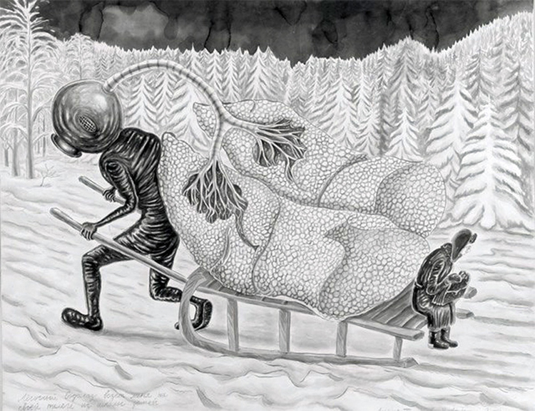 “月亮先生”列昂的藝術之旅始于1980年代,以漫畫為起點構建荒誕美學。1979年從莫斯科謝切諾夫第一醫學院畢業后,這位手持解剖刀的醫學生轉身執起畫筆,將科學的理性與浪漫的想象熔鑄于創作中。早在求學期間(1973年),他便以黑色幽默的漫畫作品在期刊中嶄露頭角,荒誕的視覺語言里暗藏對人類存在的哲學思辨。